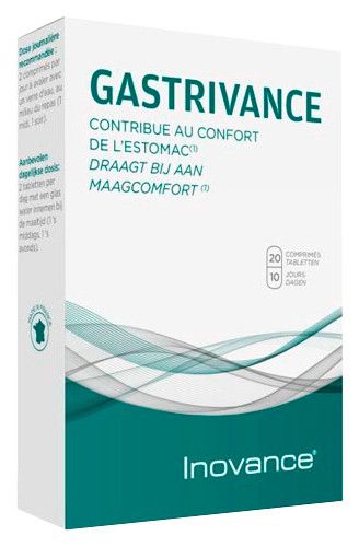 GASTRIVANCE INOVANCE YSONUT es un complemento alimenticio formulado para contribuir a la salud del sistema digestivo. Presentado en un envase de 20 comprimidos, su composición está diseñada para proporcionar un apoyo integral a la función gastrointestinal, ayudando a mantener un equilibrio óptimo en el tracto digestivo.