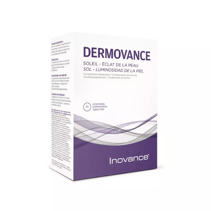 INOVANCE DERMOVANCE es un complemento alimenticio en forma de 30 comprimidos, diseñado específicamente para apoyar la salud de la piel y contribuir a su mantenimiento adecuado. Su fórmula incluye ingredientes activos que ayudan a mejorar la hidratación y el aspecto general de la dermis, favoreciendo la regeneración celular.
