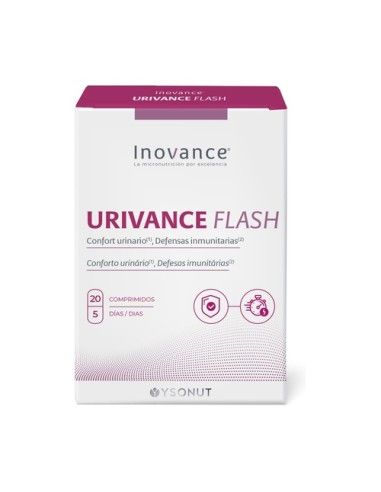 INOVANCE URIVANCE FLASH es un complemento alimenticio formulado para contribuir al bienestar del tracto urinario. Presentado en un envase de 20 comprimidos, este producto está diseñado para favorecer la salud renal y ayudar en la eliminación de toxinas, promoviendo así una función urinaria adecuada.