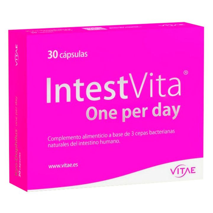 VITAE INTESTVITA ONE PER DAY es un complemento alimenticio diseñado para optimizar la salud intestinal y promover un adecuado funcionamiento del sistema digestivo. Este producto se presenta en un envase de 30 cápsulas y está formulado con ingredientes de alta calidad que contribuyen a mantener el equilibrio de la flora intestinal y facilitar la digestión. Características: